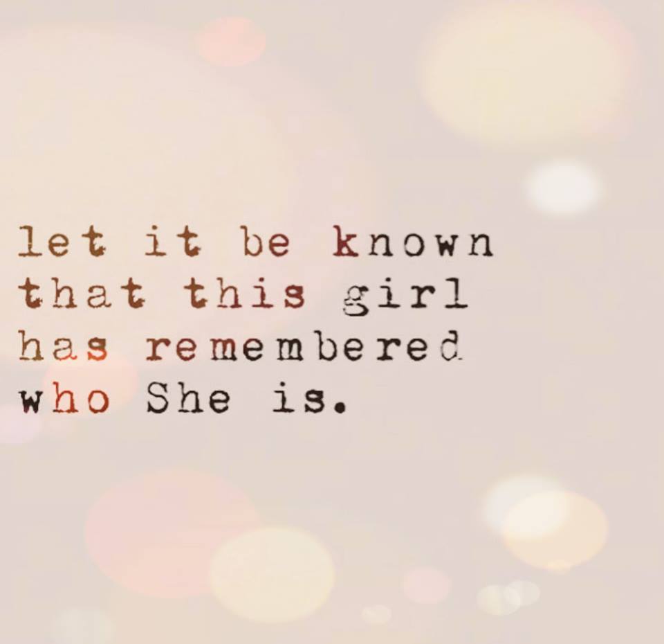 I love that statement.. "Let it be known that this girl has remembered who She is". Because there was a moment this last week where I realized..I had in fact remembered. Whaaaaa.. about time right.. LOL? No it was just the right time..my time..when my heart and soul were ready. When my need to move forward over came my fear of standing still. One step..one leap...whooot here I go. I was a pro leaper in the past..no fear..Let Fly.. caution to the wind. I am a more cautious leaper now. A wiser, older leaper. A... let's check out where we land leaper. For me..I think this is a good thing.